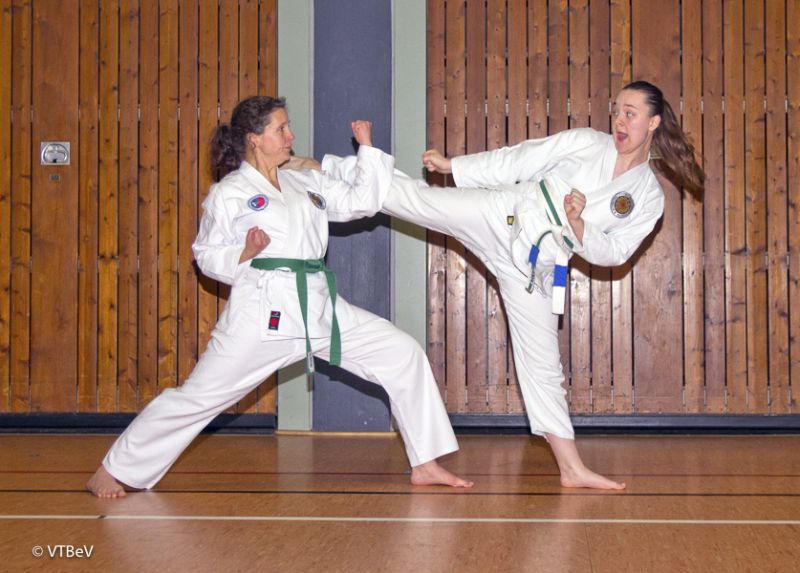 Im Anschluss standen dann in der Halle die Themen Hyong und Partnertechniken an. Wie vor jeder Trainingseinheit üblich, wurde eine kurze Konzentrationsphase, der Chip Choong, praktiziert.