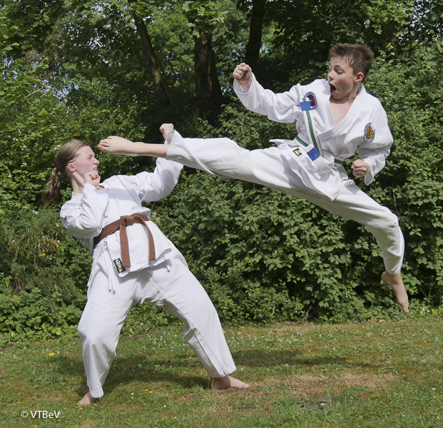 Die zwölfjährige Sandra Salewksi aus Hude gehört zu den regelmäßigen Teilnehmern der Camps. Zusammen mit ihrem Vereinskameraden Jonathan Hoffmann wurden ihr unter anderem die neuen Yakssok zur nächsten Prüfung im Traditionellen Taekwon-Do vermittelt.